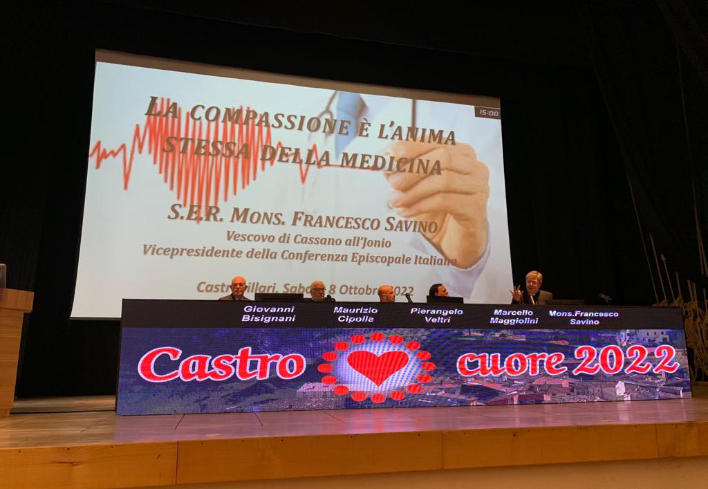 “Empatia, condivisione, umanizzazione, scienza e carità sono al centro della sua opera pastorale sanitaria. Un riconoscimento anche per l’amorevole e costante attenzione che dedica alla sanità del nostro territorio. Le siamo grati per ieri, oggi e domani”. Con queste parole Giovanni Bisignani, medico cardiologo, a margine del X congresso Nazionale Castrocuore 2022, ha dato lettura della motivazione per il conferimento del premio “Castrocuore” a S. E. Mons. Francesco Savino.