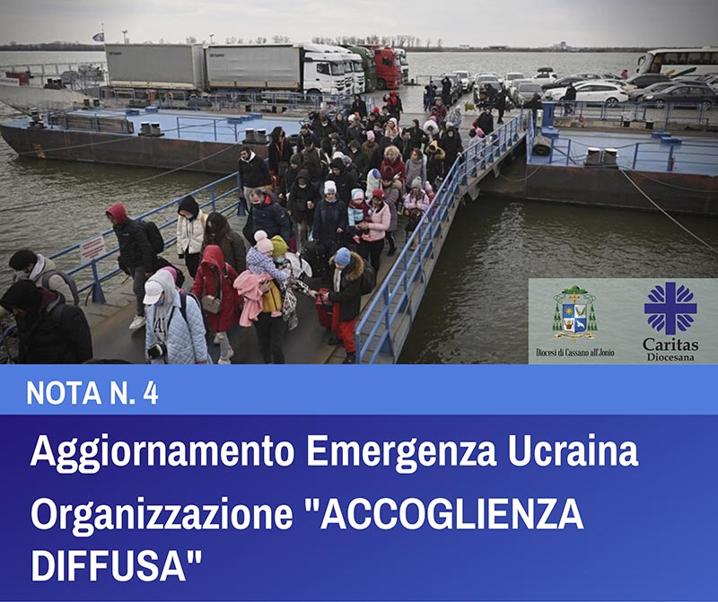 Cogliamo l’occasione per far diventare l’“accoglienza diffusa” un momento di opportunità per tutti, cercando di assegnare centralità alla comunità (parrocchie, istituti religiosi, famiglie, ecc. …) intesa come sistema di relazioni in grado di supportare il processo di inclusione sociale per le persone che hanno lasciato la propria terra a causa della guerra.