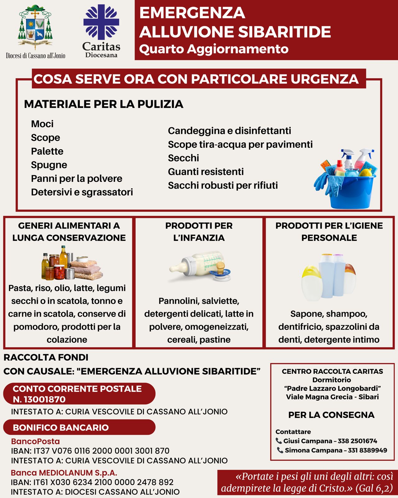 Con queste parole dell’Apostolo Paolo, la Diocesi di Cassano all’Jonio rinnova il proprio impegno accanto alle comunità di Lattughelle e dei Laghi di Sibari, duramente colpite dall’alluvione causata dall’esondazione del fiume Crati.