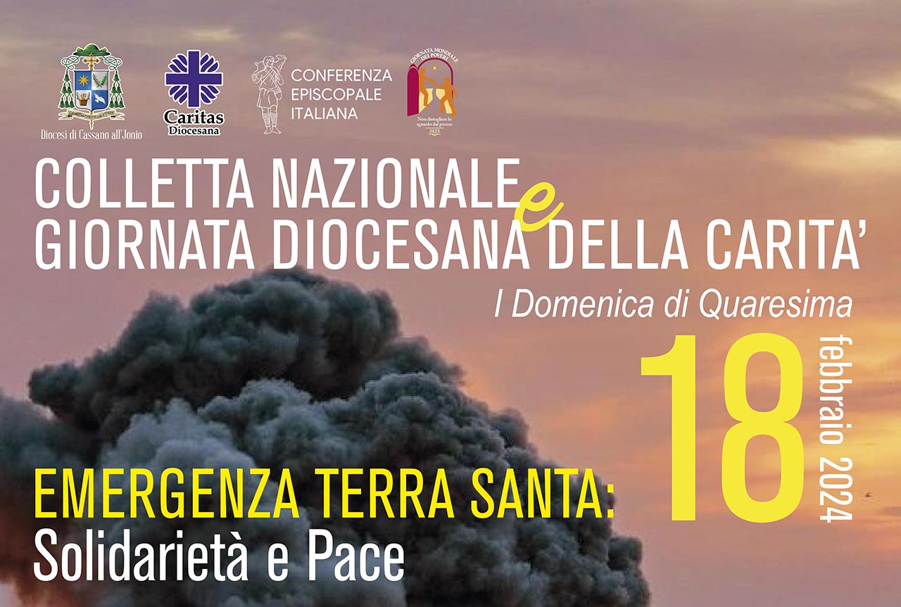 La Presidenza della Conferenza Episcopale Italiana indice per domenica 18 febbraio (I di Quaresima) una colletta nazionale, da tenersi in tutte le chiese italiane, quale segno concreto di solidarietà e partecipazione di tutti i credenti ai bisogni, materiali e spirituali, delle popolazioni colpite dal conflitto in Terra Santa.