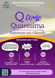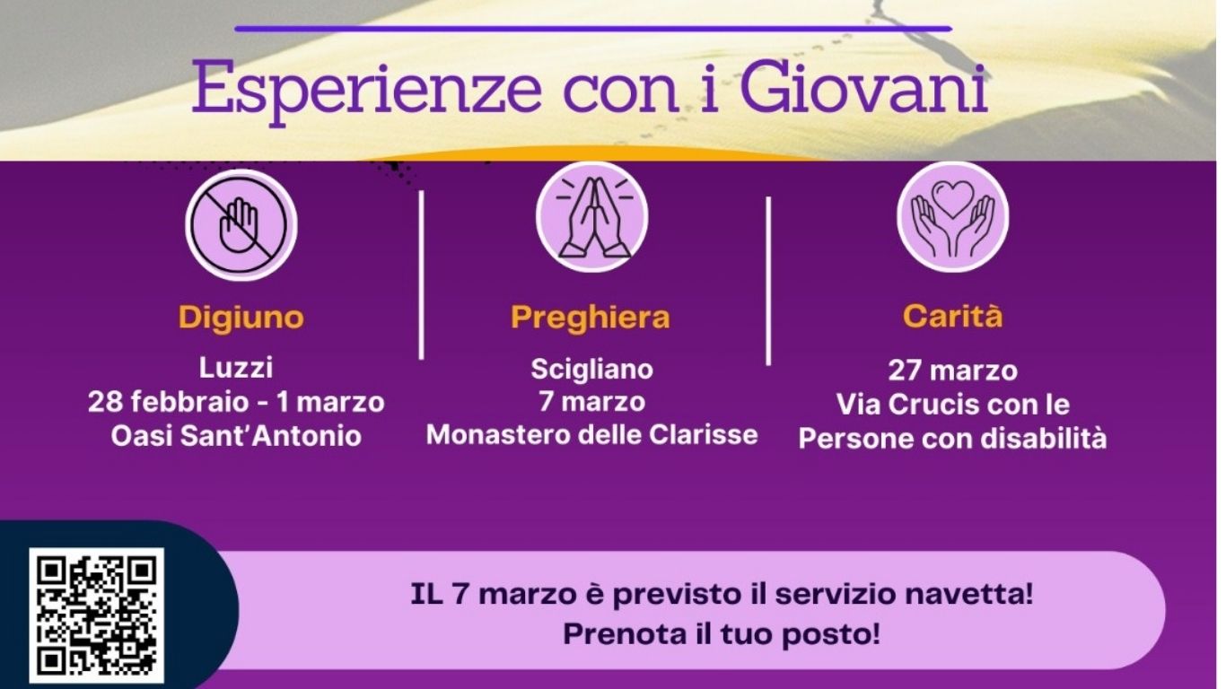 L’Ufficio di Pastorale Giovanile e Vocazionale propone per questa Quaresima un’esperienza pensata non solo per i giovani che già partecipano ai week end formativi, ma anche per quanti desiderano avvicinarsi per la prima volta a un percorso di crescita spirituale e comunitaria.